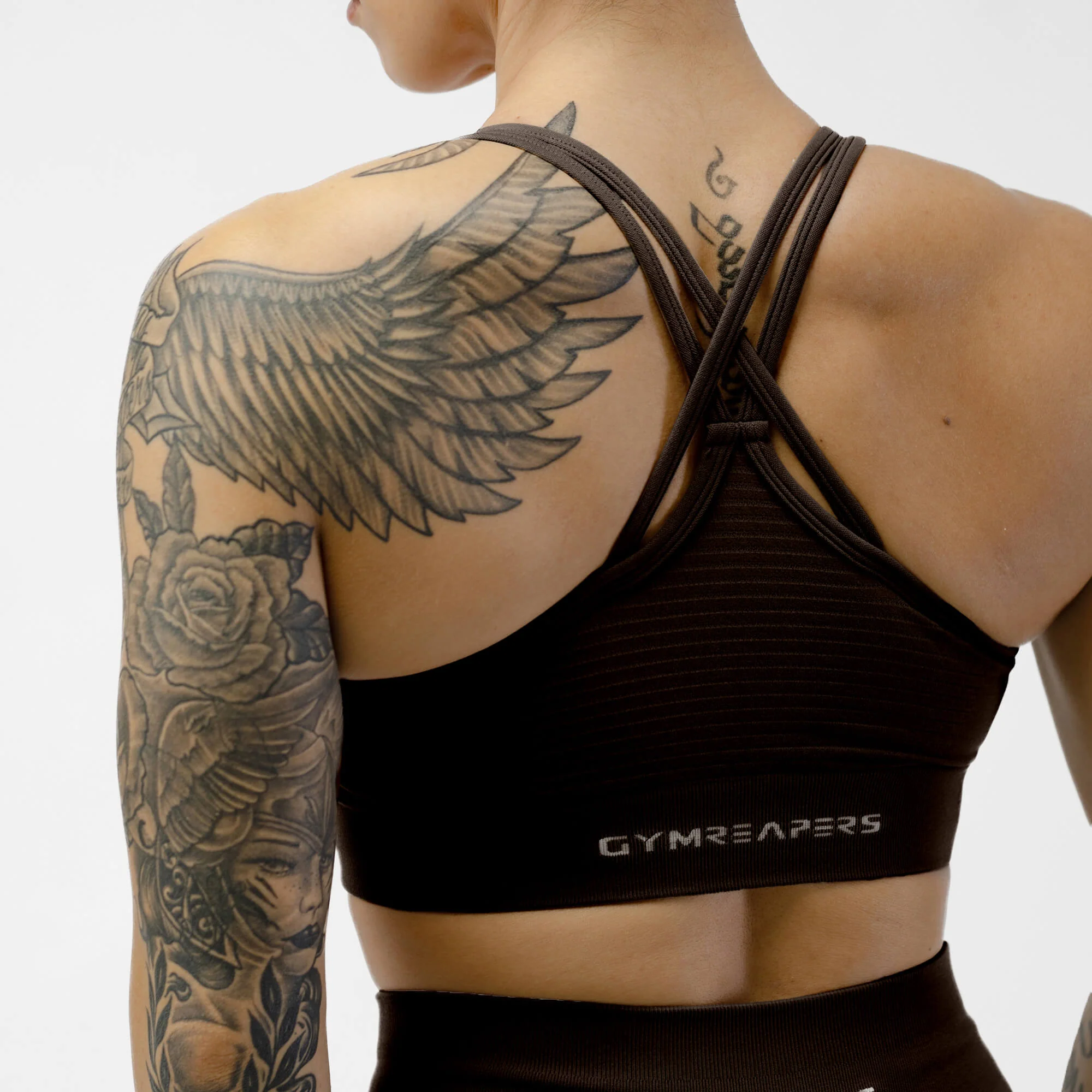 With 4-way stretch elasticity that moves with you, the Halo Bra delivers incredible flexibility and shape retention. Subtle Gymreapers branding is knitted into the waistband for a simple form-fitting look.