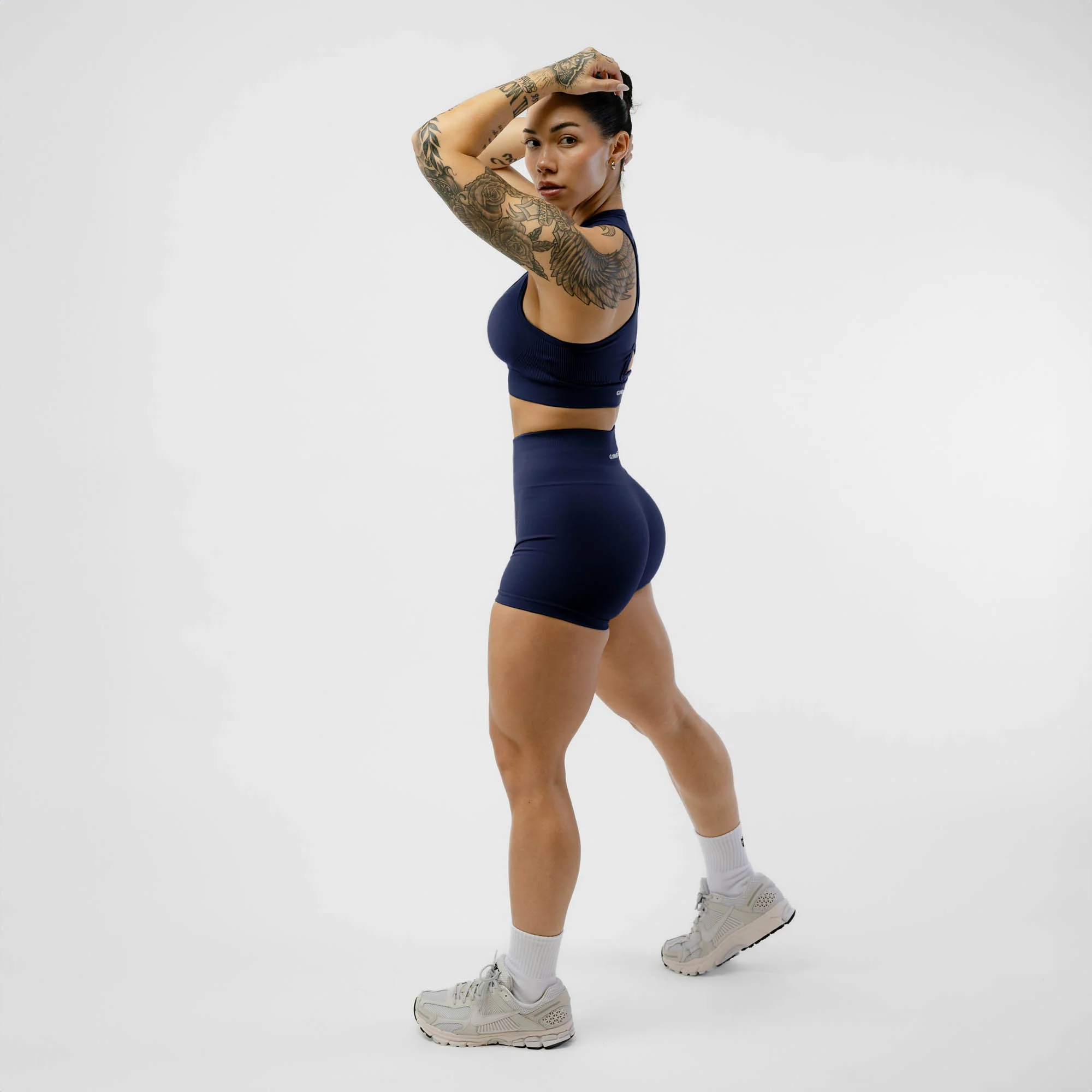 Introducing the Halo Seamless Shorts featuring seamless knit interlock fabric. These shorts are designed to create a dense compression feel while maintaining breathability and flexibility.