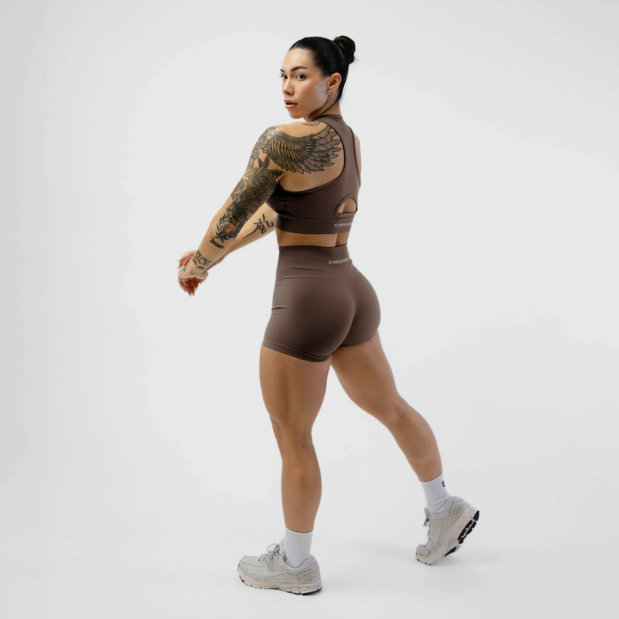 Introducing the Halo Seamless Shorts featuring seamless knit interlock fabric. These shorts are designed to create a dense compression feel while maintaining breathability and flexibility.